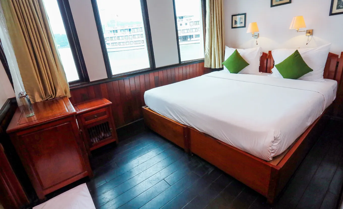 This ship seamlessly blends comfort and style, utilizing local timber, marble, and copper to preserve a charming traditional design. It features only 10 and 18 fully equipped cabins along with a spacious restaurant and a vast sundeck. Cruising through Bai Tu Long Bay, a less crowded gem compared to its neighbor Halong Bay, the Garden Bay Legend Cruise promises a unique and authentic experience for a small group of travelers.