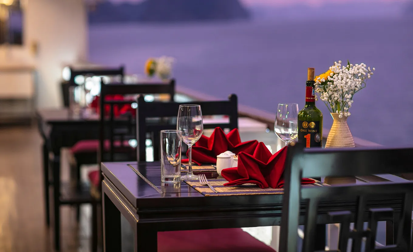 La Regina Classic, the newest ship of the La Regina Cruise Team, stands out with its oriental design. The ship blends modern and ancient styles, creating a unique and inviting atmosphere. The luxurious and sophisticated space feels akin to a royal palace on the tranquil blue sea.