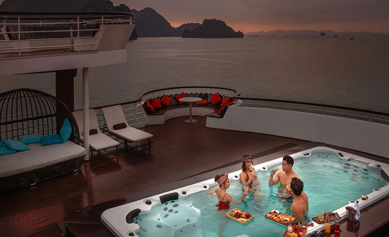 Embark on an unforgettable journey to the stunning Halong Bay aboard the luxurious Ambassador Cruise. This extraordinary 5-star cruise ship boasts an elegant design with twin sundecks, two exquisite restaurants, an open-air Jacuzzi pool replete with top-notch amenities, and a lineup of spectacular entertainment activities to ensure a unique experience.