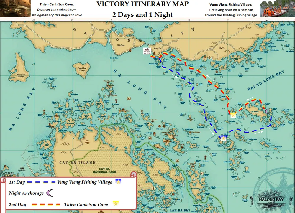 Inspired from traditional junk manufacturing, Victory Cruise is the symbol of Halong Bay’s legendary beauty. Tropical precious wood, fine arts decorations and a devoted staff will lead you to an amazing journey discovering Ha Long Bay.