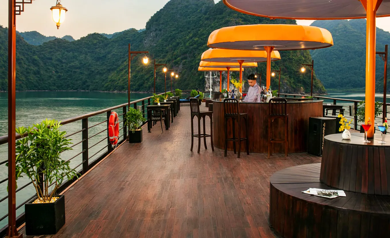 18:00: Onboard, participate in a cooking demonstration where traditional Vietnamese food is prepared. Enjoy Happy Hour (buy one, get one free) at the bar while watching the sunset over the bay.
