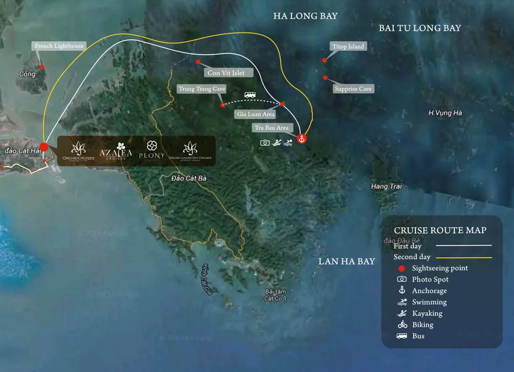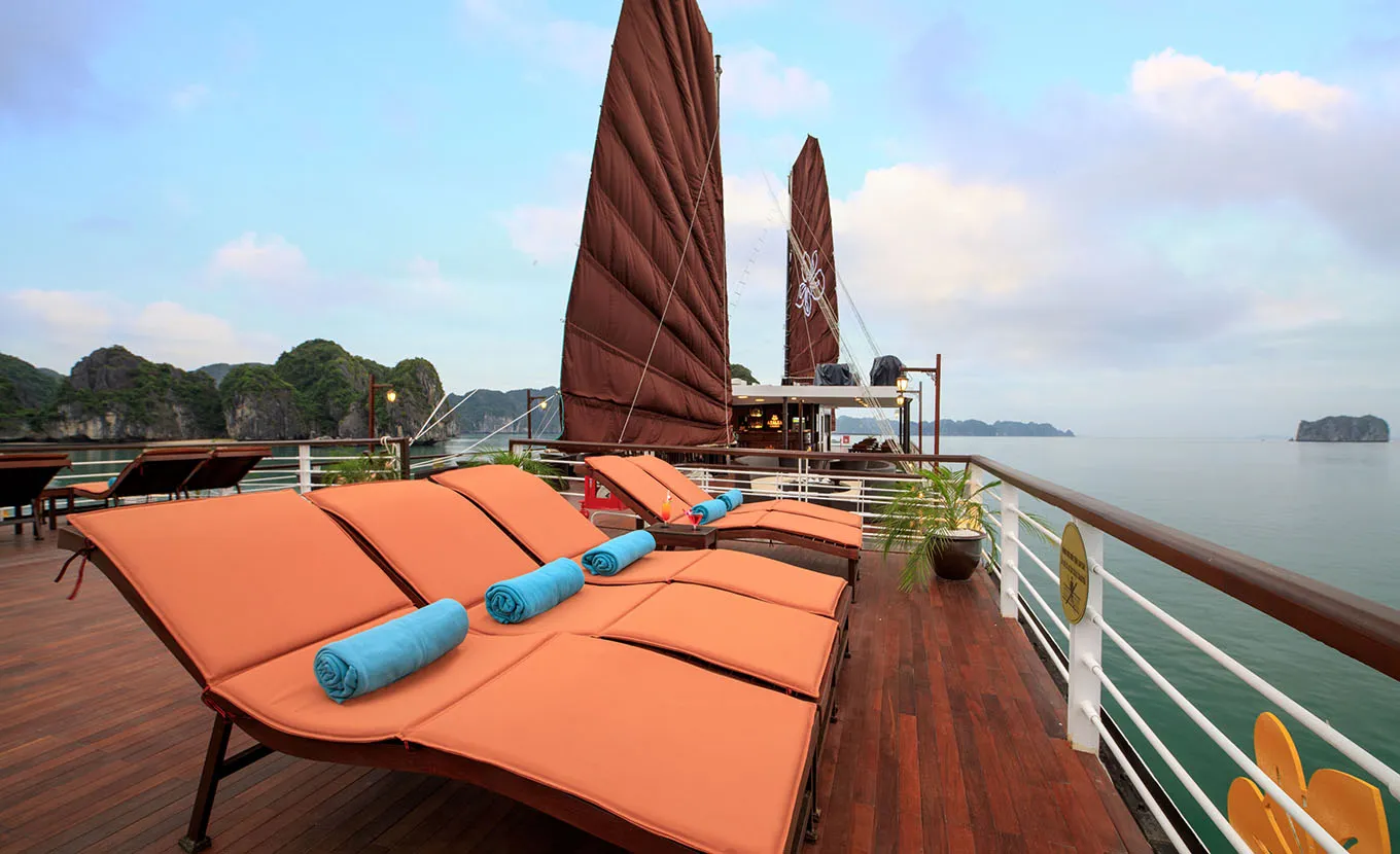 Orchid Trendy (Azalea) cruise provides 5-star services for the journey to discover the mysterious Lan Ha Bay that is full of charm. Witness the natural landscape and authentic life of the local, discovering exquisite cuisine ... surely an unforgettable impression on the journey to Vietnam.