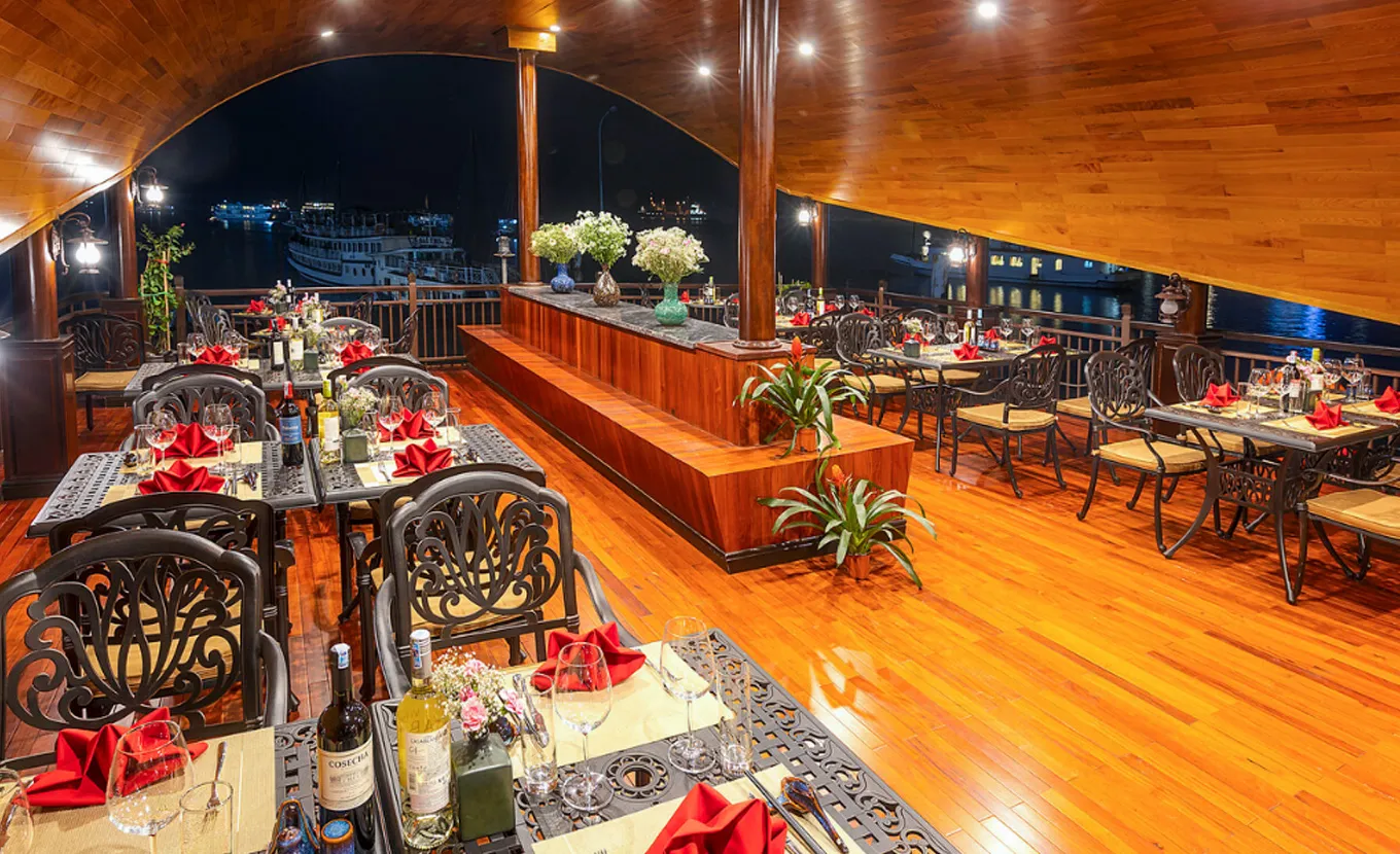 10:00: Lunchtime. During the time, a well-prepared Set menu lunch is served. Sena Cruise slowly navigates emerald water and thousands of Karst Mountains towards the Harbor.