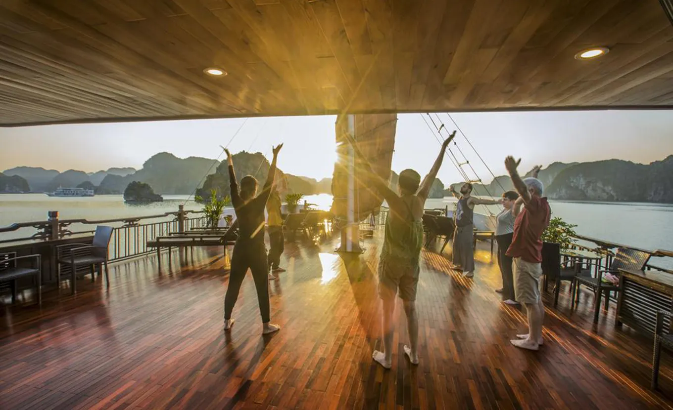 17.30 – 19.15: Back to junk for refreshing and enjoying your relaxing time on the sundeck and experience our Vietnamese authentic cooking demonstration before having dinner on board.