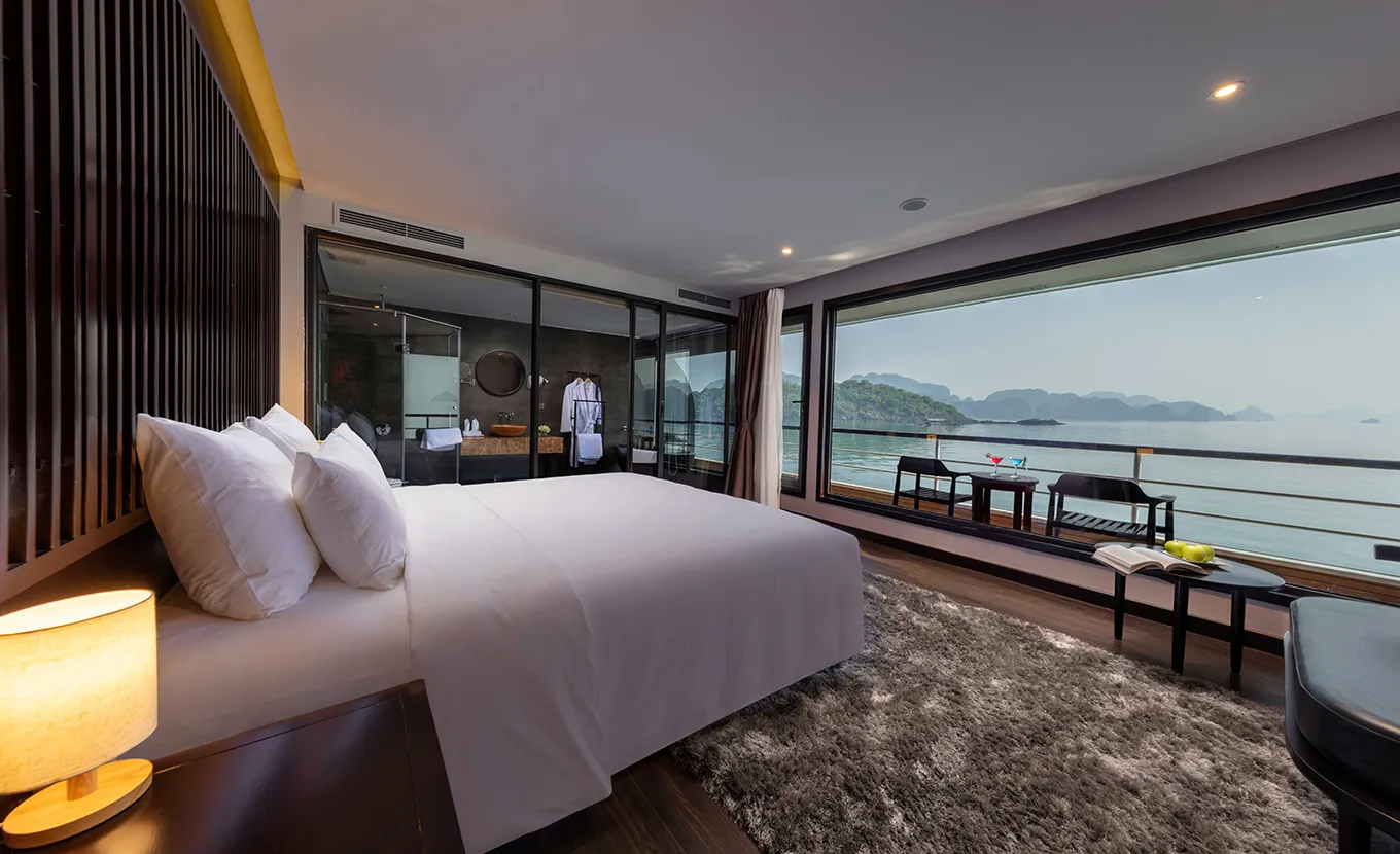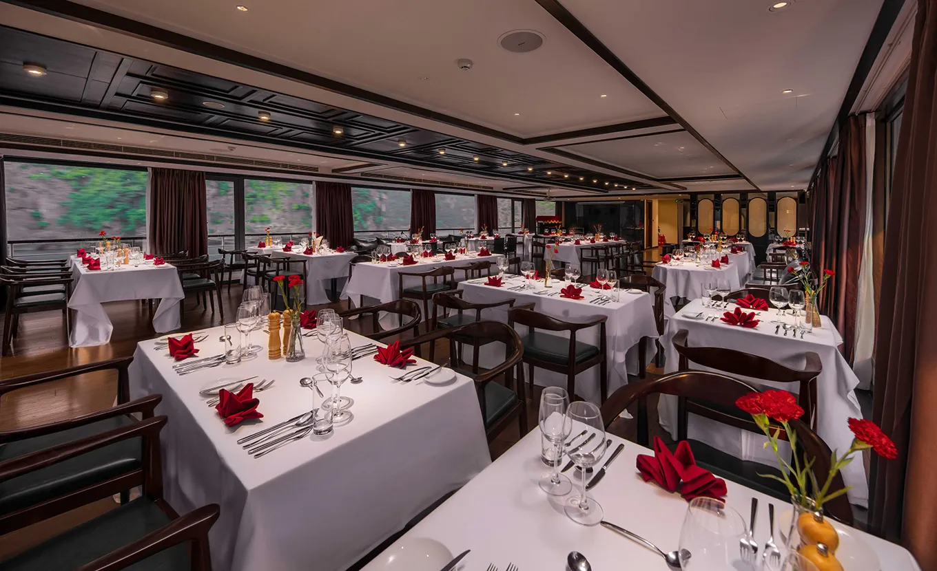 11:30: You'll arrive at the Scarlet Pearl Cruise's Lounge in Halong International Cruise Port for check-in. We'll offer you a welcome drink and provide important instructions to ensure you have a seamless experience on board.