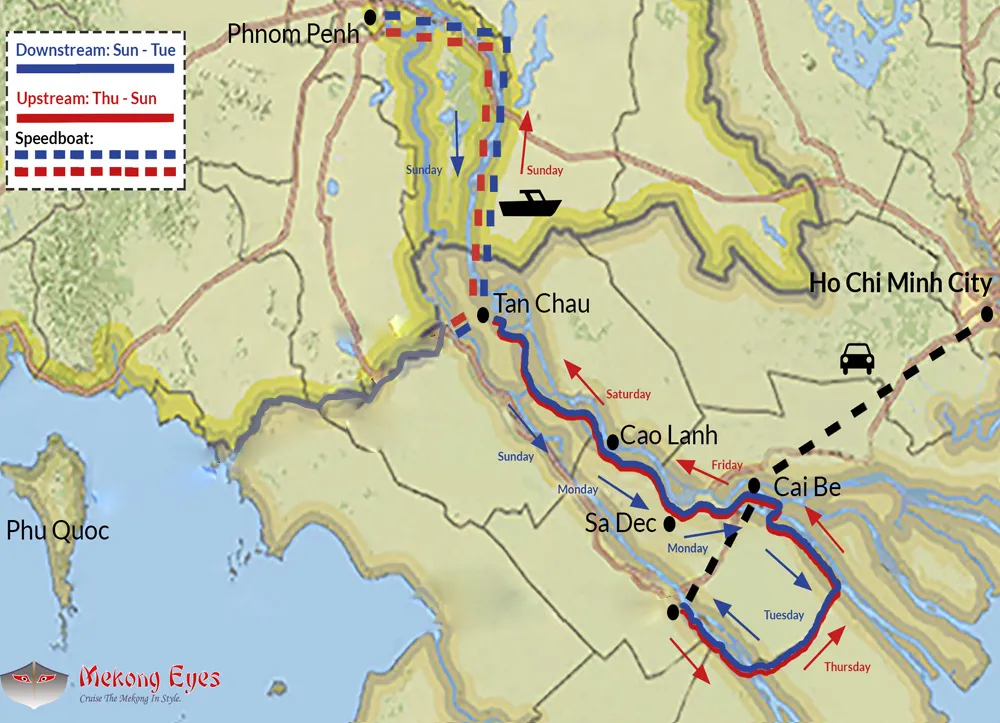 Mekong Eyes Explorer offers an authentic itinerary to truly explore Mekong Delta with the most exciting daily lives can be seen. Roaming through the narrow and winding rivers and canals of the river system that cannot be accessed by the larger boats. That way we can show you the hidden gems of the Mekong Delta. Tour extents to Cambodia on the last day by speed boat.