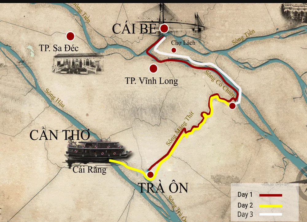 06:00: The boat departs and passes by Tra On. The ship then departs towards Can Tho.