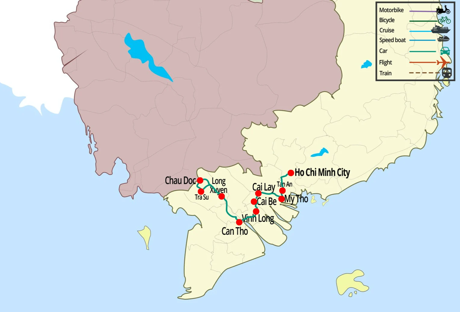 NOTE: It's possible to take a high-speed boat (at 7.00 AM) to Phnom Penh, Cambodia.Pay extra $31/pax or arrange by yourself.